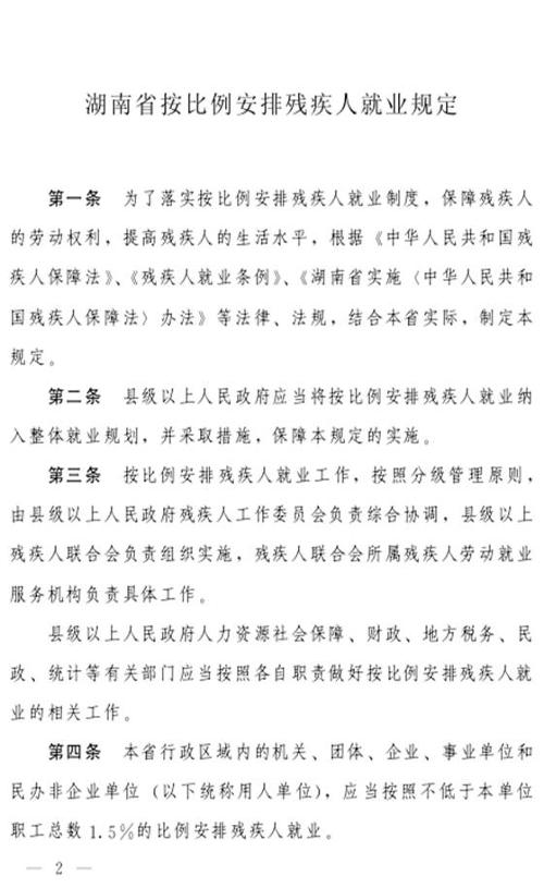 《湖南省按比例安排残疾人就业规定》